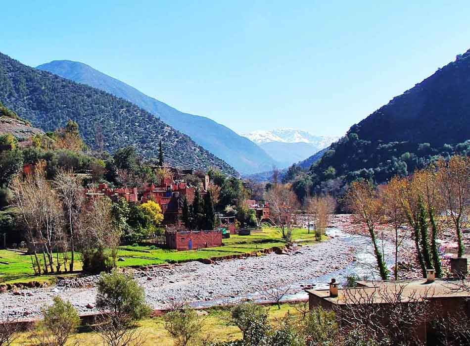 Ourika valley is one of the most popular destinations for foreign tourists as well as for Moroccans. The road from Marrakech to the valley is bordered by gardens, palm and fruit trees, small villages, Berber houses. In the valley itself, the Ourika River descends from the High Atlas, passing by Asguine, Aghbalou, Oulmes and finally the village of Setti Fatma ...